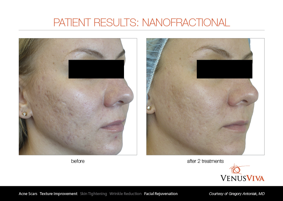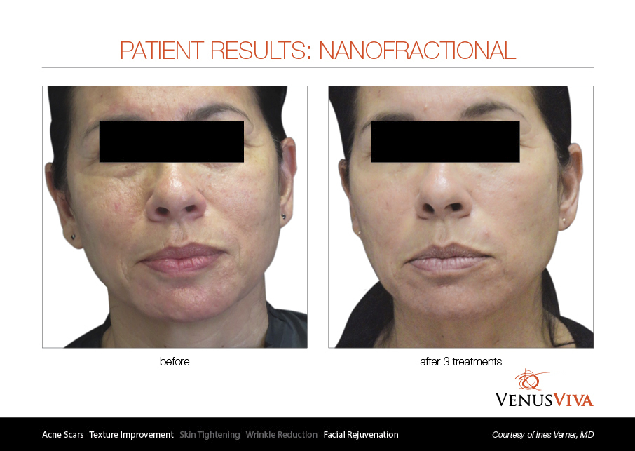 Venus Viva™ is a highly customizable skin resurfacing device that delivers exceptional results with low downtime. Powered by NanoFractional Radio Frequency (RF) with SmartScan™ technology, it is a fractional radio frequency system that allows operator control of ablation, coagulation, and resurfacing for enhanced efficacy in resolving mild to severe skin damage. Venus Viva™ can replace all other skin resurfacing devices with one lightweight, tabletop device. Skin resurfacing treatments are safe for all skin types with low downtime.